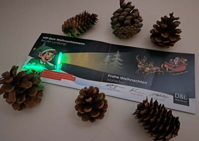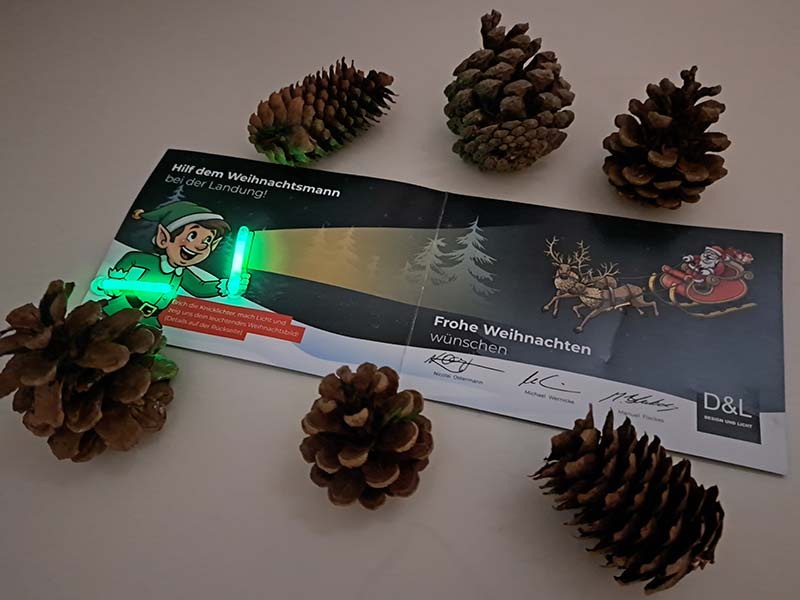 Fotografieren Sie Ihre aktivierte Weihnachtskarte mit den beiden leuchtenden Knicklichtern und laden Sie das Bild hier hoch.